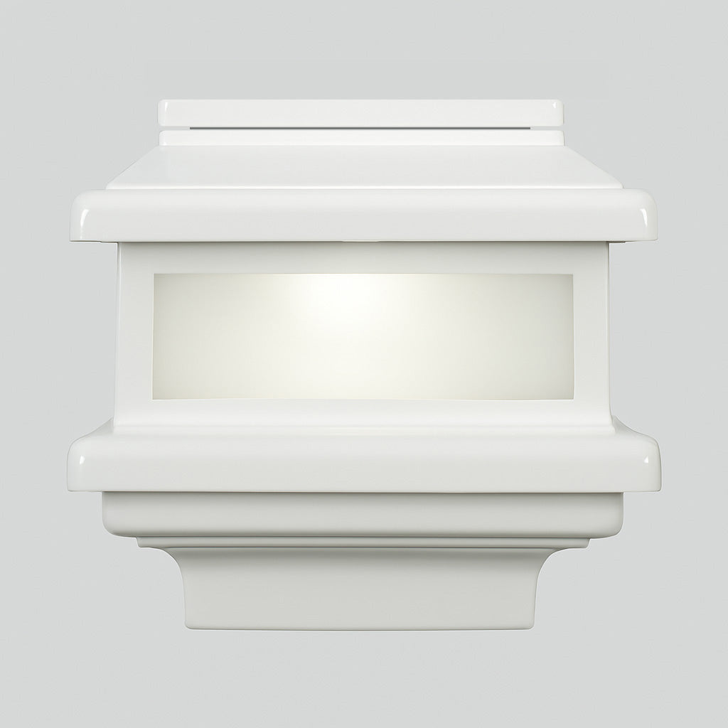 Elevate your outdoor space with the timeless charm of the MaciMae 3x3 Solar Post Cap. Crafted from durable cast aluminum and accented with real frosted glass panes, it delivers a soft, inviting glow that enhances any garden or deck. Choose between bright white or warm white LED options to suit your ambiance. Finished with a weather-resistant powder coat in your choice of Black, Bronze, or White, this cap combines enduring style with advanced solar performance—no wiring required.