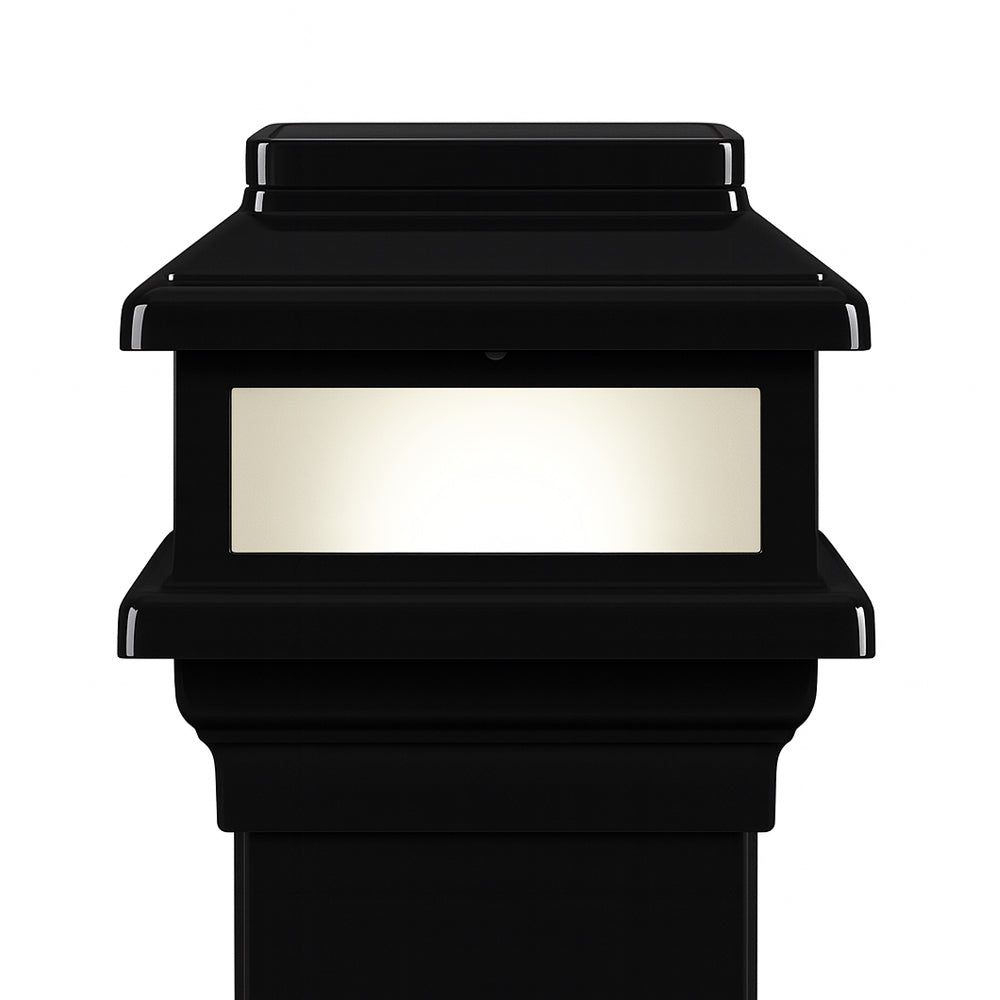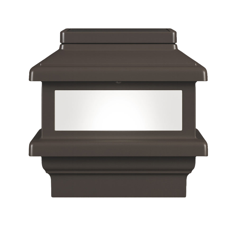 MaciMae 4x4 Solar Deck Light offers classic styling in a heavy-duty cast aluminum frame with frosted glass panes to create a soft glow of light. Advanced solar panel on top for maximum sun exposure for up to 10 hours of light on a full charge. Available in durable Black, Matte Black, Bronze, Tan or White powder coat finish. Comes standard with Bright White LEDs or upgrade to warm white.